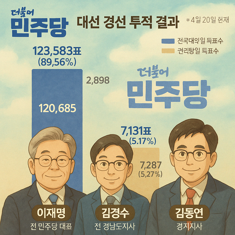 이러한 맥락에서 본다면, 민주당 대선 경선도 현재의 구도가 그대로 굳어질 가능성이 큽니다. 특별한 정치적 사건이나 대형 이슈가 없는 이상, 이재명 후보는 결선투표 없이 대선 후보로 확정될 것이고, 본선에서는 윤석열 정부와의 정면 승부를 준비하게 될 것으로 보입니다. 다만 야권과의 연대, 중도층 확장 등은 여전히 과제로 남아 있습니다.