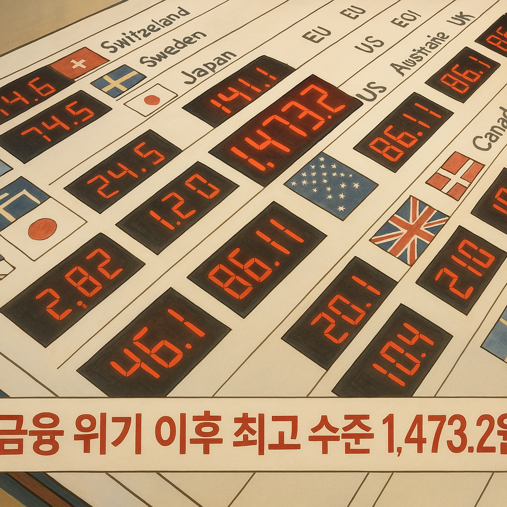 2025년 4월 8일, 지난해 말부터 이어진 원·달러 환율 급등세는 2024년 12월 8일 다시 한 번 정점을 찍었습니다. 이날 서울 외환시장에서 원/달러 환율은 전 거래일보다 5.4원 오른 1,473.2원으로 마감되며, 주간 거래 종가 기준으로는 2009년 금융위기 당시 1,483.5원을 기록한 이후 약 16년 만에 최고 수준에 도달했습니다. 하루 사이에도 환율은 1,471.0원에 개장한 뒤 한때 1,466.3원까지 하락했다가 오후 3시 무렵에는 1,473.9원까지 오르며 고점을 갱신했습니다. 이는 외환시장이 얼마나 예민하게 반응하고 있는지를 여실히 보여주는 대목입니다.